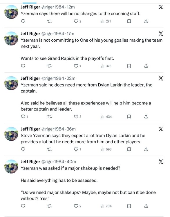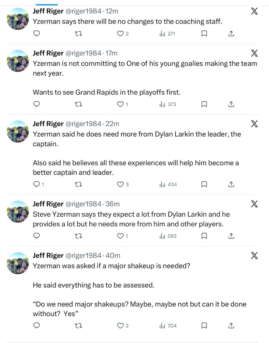 2. A string of posts by Jeff Riger from Yzerman’s end of season press conference.