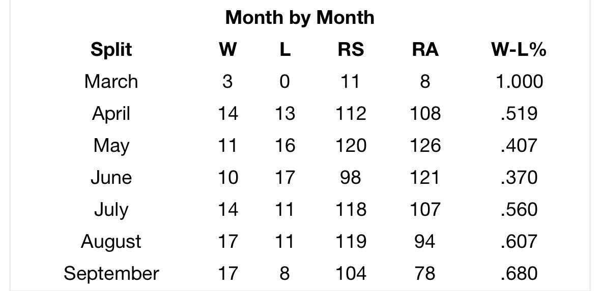 He started batting leadoff on April 12 and stopped on May 23. He also batted cleanup during that stretch. I don’t think the switch out of leadoff in May was a substantial factor in their late August turnaround. -