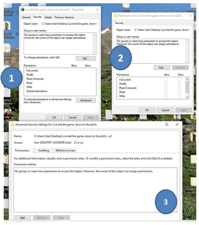 Thank you for answering. I tried clicking on the 'security' tab. Then hit 'edit' below the first box (image 1). Then next box (image 2) it would NOT allow me to choose anything. Then I 'x' out and choose 'advanced' below the second box and this appeared (image 3)... Not sure here... -