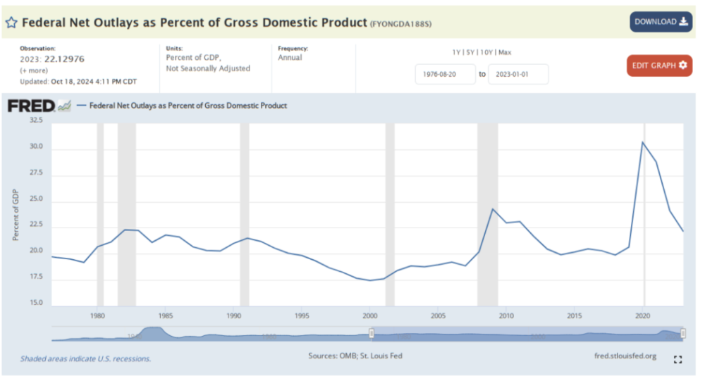 The huge covid spending spike is already mostly over. As percentages of GDP both spending and receipts are really not that far off historical norms, they are just both on the wrong side at the same time. If you hold spending increases to 1/2 of inflation and raise taxes 2% of GDP you are probably there. Its not the economics, it's the politics.