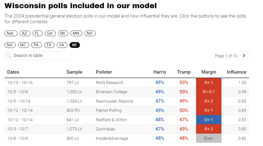 Here's Silver's page for recent Wisconsin polls. This doesn't look like a "rest easy" situation. Noting that the right wing polls are filtered out. He actually ran a sim this week without those polls which showed better for Trump, showing that the partisan adjustment is doing its job.