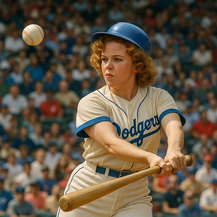 3. I have tried in the past to create images of real people shown in various situations and the output has never been any good. Frequently they’ve rendered as cartoons. But that was probably a year or more ago and I was so disappointed by the results that I never tried it again. Obviously it has gotten better at it. This is a picture of Shirley Temple hitting a home run in a major league game. Meh.
