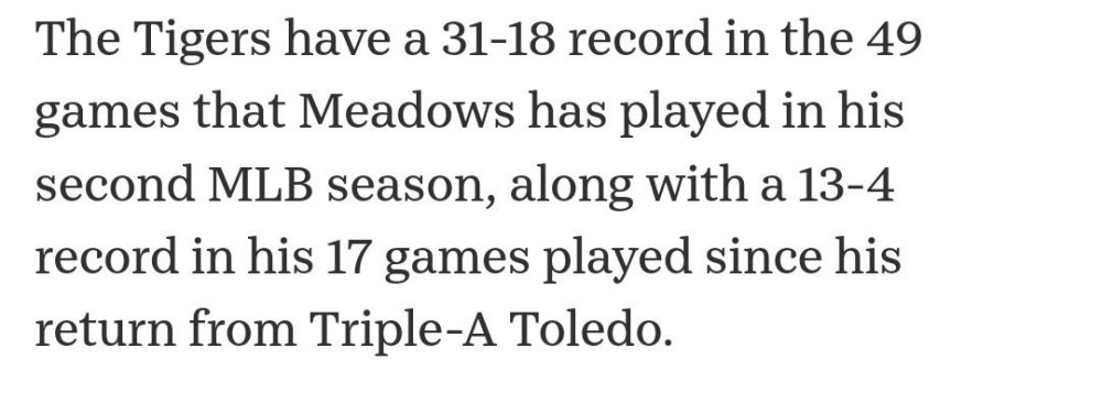 Tigermojo Posted August 23, 2024 Posted August 23, 2024 1 hour ago, 1984Echoes said: Mike Trout numbers. But yeah... I highly doubt Parker could sustain that. Like... 99.9% doubtful. Wait... what's his BABIP? .429 1 Quote