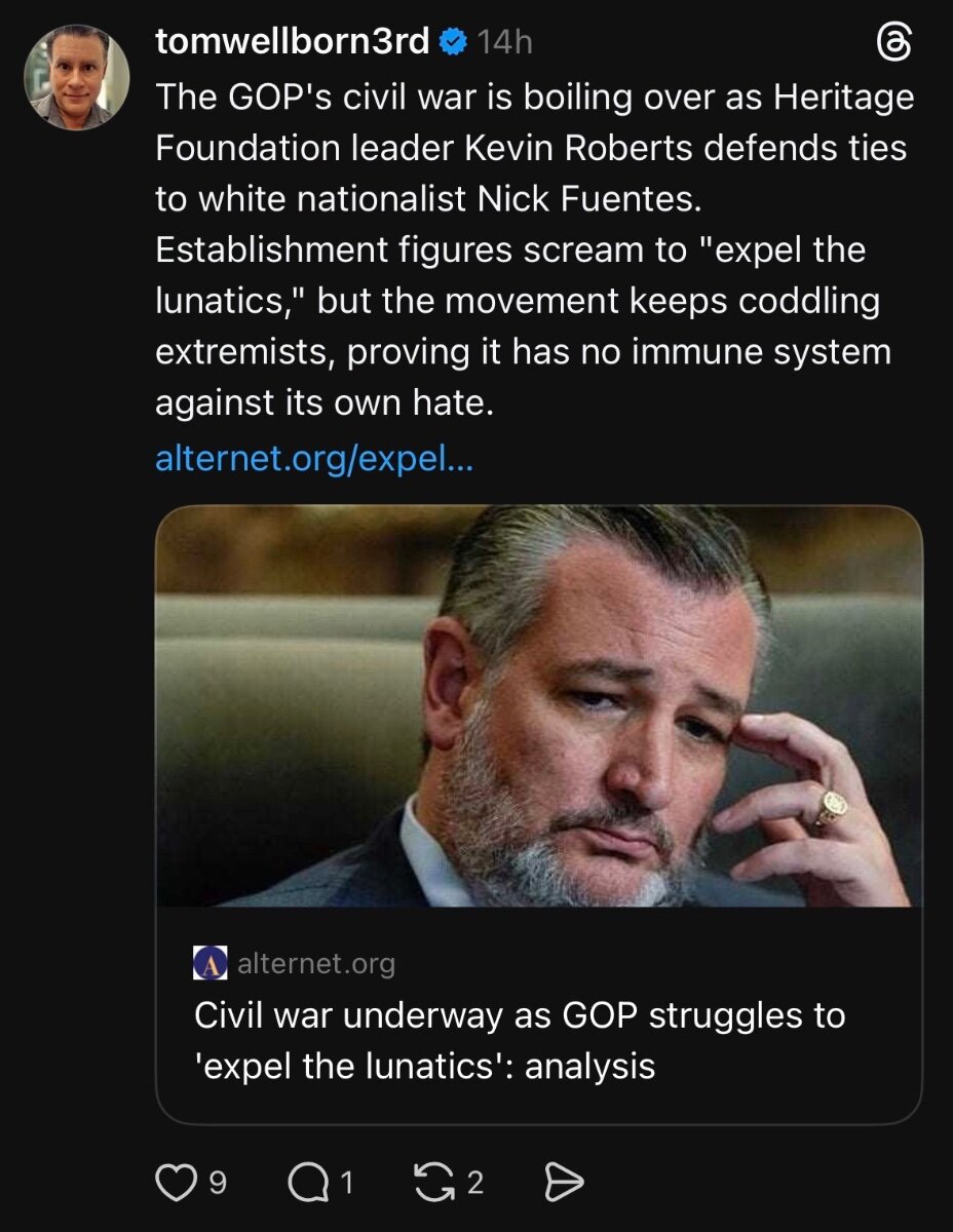 guy incognito Posted 3 hours ago Posted 3 hours ago (edited) https://www.threads.com/@tomwellborn3rd/post/DR7MWkLkSHJ?xmt=AQF0HR6Y6Yt8aQV7JeD7wNERd5tmqkawjvKfWPKQM-DSjVjLudVE1636dKAV3ZLuydZhBaI&slof=1 Edited 3 hours ago by guy incognito Quote