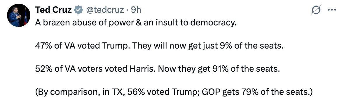 gehringer_2 Posted 1 hour ago Posted 1 hour ago (edited) do our GOP apologists even know that the CA redistricting move was designed to not even take effect unless Tx went through with theirs? How's that old song go?: "One of these things is not like the other....." So they called the tune and now they are sorry when they find out the others guys can dance it better then they can. Edited 1 hour ago by gehringer_2 Quote