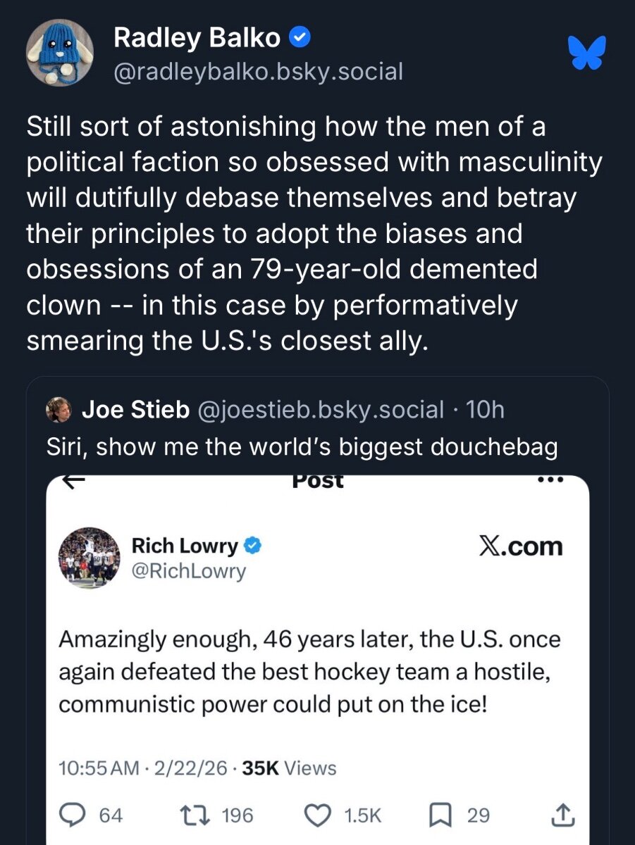 oblong Posted 58 minutes ago Posted 58 minutes ago Rich Lowrey and Ted Cruz are the perfect embodiment of the weak. They are George McFly to Trumps Biff. Quote