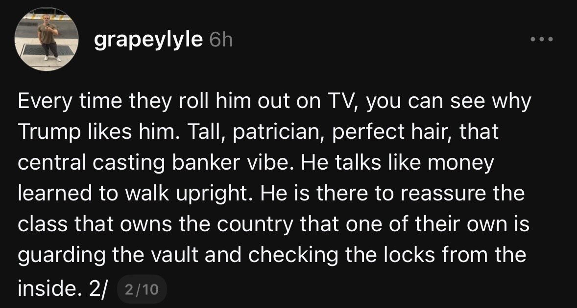 oblong Posted 1 hour ago Posted 1 hour ago I’m trying to remember why I hated Thomas Massie. If I were a billionaire I would be behind him. Not because of his politics but because he represents the normal window of politics. Just reset things and we can fight about the margins and not democracy itself. I saw an animated video explaining Iran Contra. Jesus Christ that seems like small potatoes today. 1 Quote