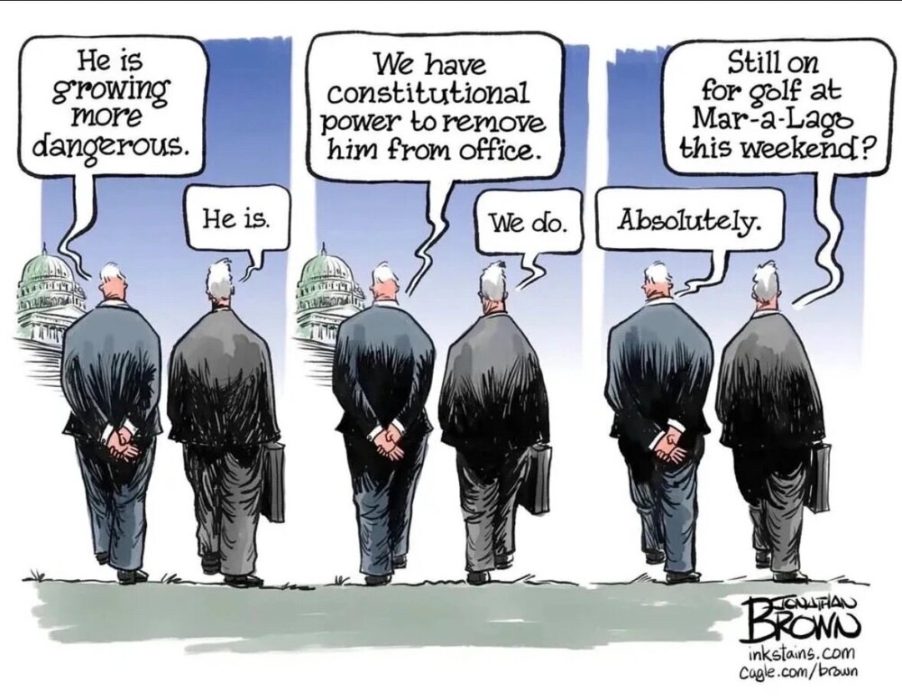 TJ Rollercoaster Posted 2 hours ago Posted 2 hours ago 15 minutes ago, romad1 said: The barest amount of courage would be that the GOP members of the Senate go to the WH today and tell him he will be removed from office if he uses a nuke. Would also settle for 4 Republican Members of Congress to tell Johnson that if he doesn't recall Congress for impeachment hearings that they'll sit with Democrats, removing him from the speakership 1 Quote