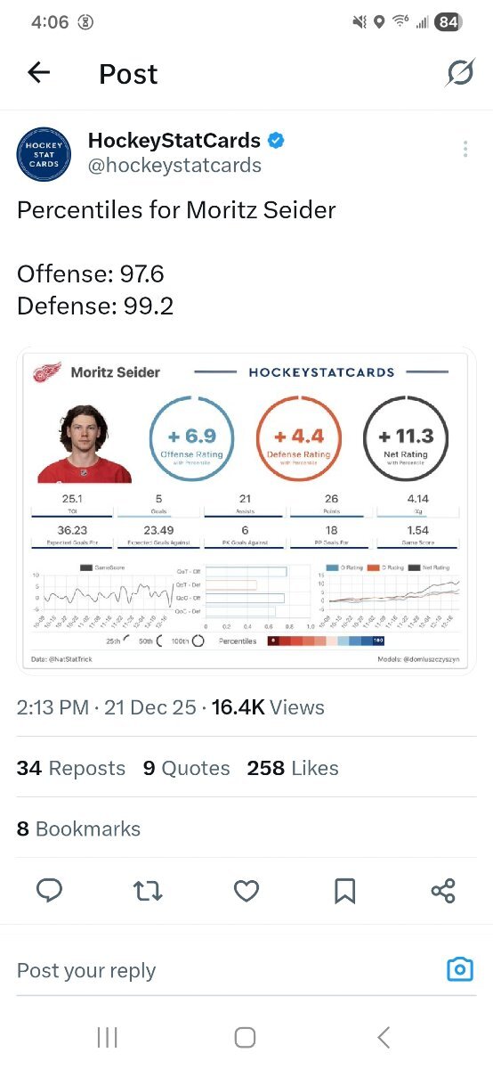 1984Echoes Posted Sunday at 09:49 PM Posted Sunday at 09:49 PM 41 minutes ago, buddha said: ... hopefully the post olympic larkin/raymond decline doesnt happen this year... Not to go all-Mr.-Eternally-Optimistic again... But yeah, hoping they solve the tougher level of NHL play that comes right at and after the trade deadline. And here's where I'll be Mr.-Eternally-Optimistic again: Weirdly... All the types of help we could use to reinforce the Wings for the postseason push, is young, and in Grand Rapids: Fresh goalie playing outstanding: Sebastian Cossa, check. Depth goalie, just in case: Carter Gylander, check. Scoring two-way power forward: Michael Brandon-Nygaard, check. Defensive defenseman: William Wallinder, check. Veteran depth defenseman: Justin Holl, check. (OK, not so young). Defensive defenseman that is chipping in with some offense: Antti Tuomisto, check. Quote