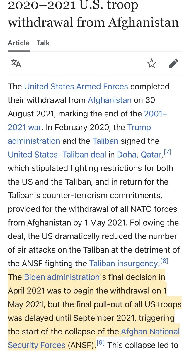 Tigeraholic1 Posted July 23, 2024 Posted July 23, 2024 6 minutes ago, pfife said: I have 13 DMs with people saying they'd post here more if you weren't such a bully to posters because Biden was a senator lol history never happened. https://en.m.wikipedia.org/wiki/2020–2021_U.S._troop_withdrawal_from_Afghanistan#:~:text=The Biden administration's final,National Security Forces (ANSF). Quote