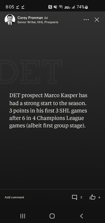slothfacekilla Posted November 2, 2022 Author Posted November 2, 2022 Large post time! Haven't thought of this guy in a while, apparently he is looking okay as a defensive defenseman in Finland but man what a bust: This gave Mazur 8 goals in 7 games, I think he's up to 10 goals now: https://denverpioneers.com/news/2022/11/1/du-pioneers-hockey-carter-mazur-named-nchc-october-player-of-the-month In Grand Rapids Beggren is back healthy and he scored. Edvinsson seems to be doing well, 6 points in 6 games. Brattstrom just got sent to Toledo. Wallinder has really developed, he looks comfortable running the power play up top: 1 1 Quote